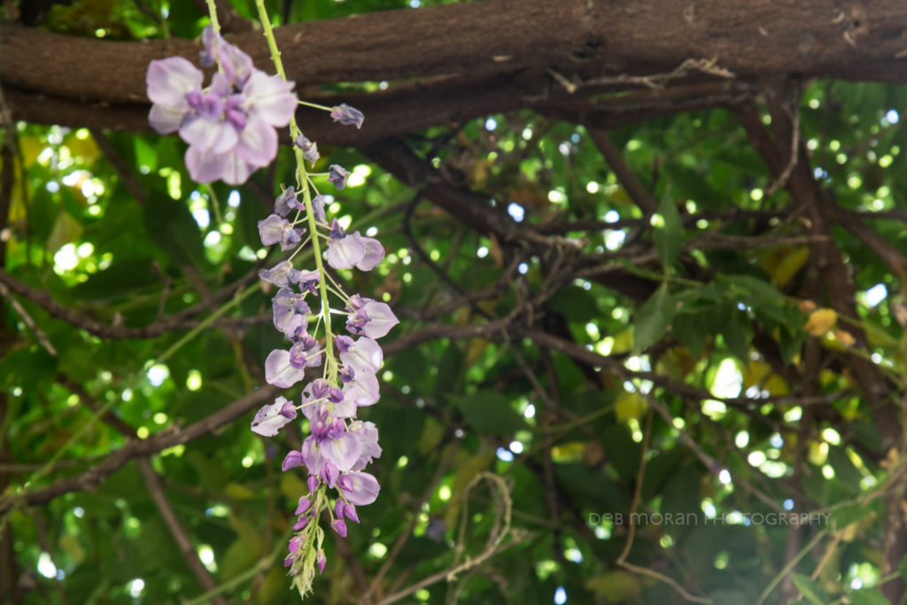 Wisteria vines covering the pergola on the Heitz Cellars patio.
