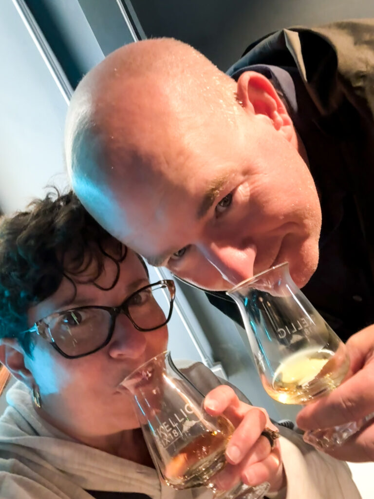 Once the climbing crew was finished, we all found some lunch and then met up at the Skellig Six 18 Distillery (named for Skellig Michael, natch) for another kind of tour. It was a bit interesting, as this was a true, working distillery. We learned about various aspects of distilling both whiskey and gin. The best part was the tasting at the end. First, we tasted the whiskey (TG had a soda). I’m not a big whiskey drinker, but I will say it was quite smooth. Then came the gin. THAT was a treat. First, we drank it straight up. It was really nice! Smooth, a bit fruity but not really sweet. Then, we added some ice, tonic, and a wedge of grapefruit. I dare say it was the best G&T I’d ever had. Though it was not as budget friendly as it would have been if we purchased it at the duty free, we did our part to support this small business and bought a bottle each of gin and whiskey to bring home.