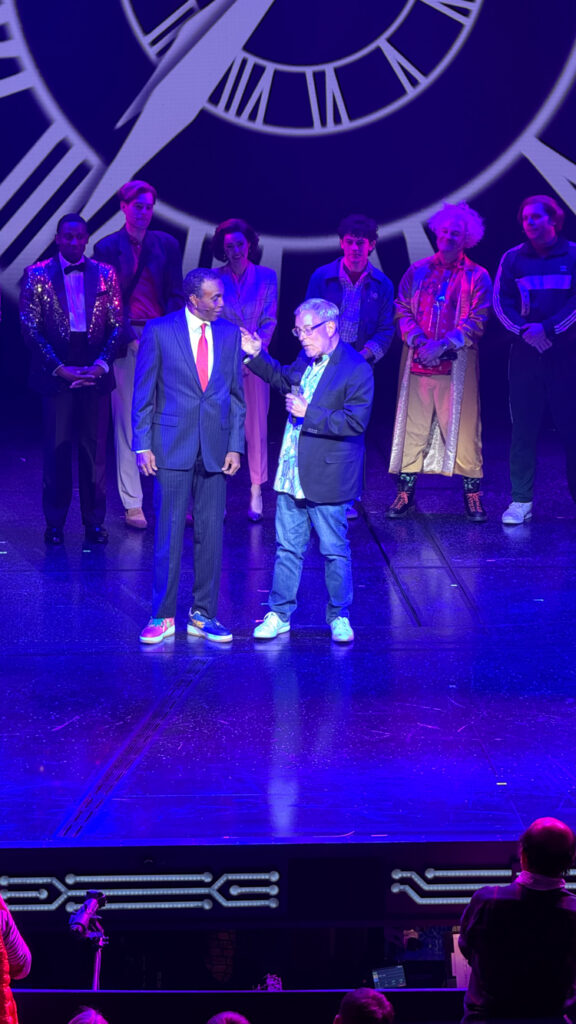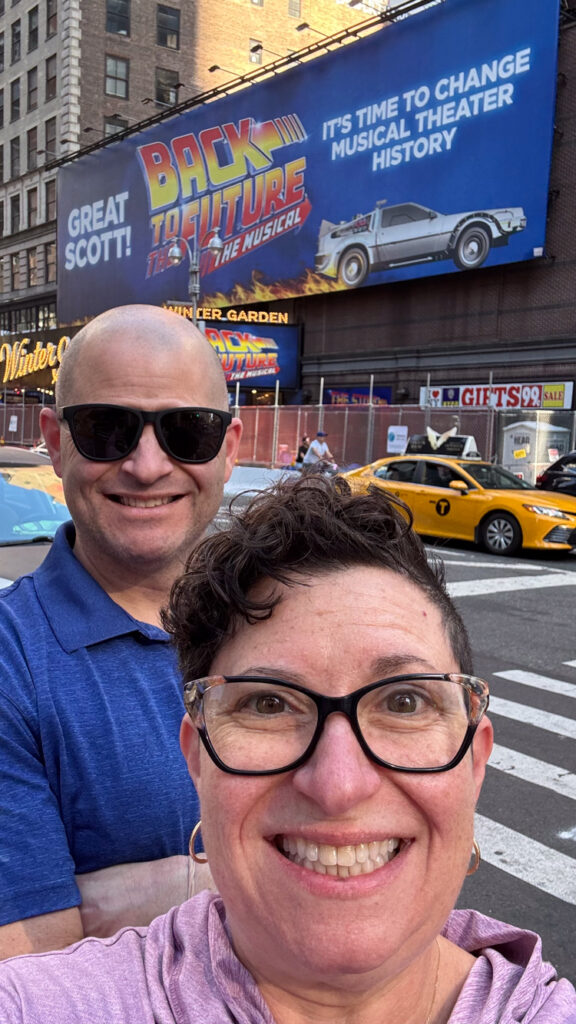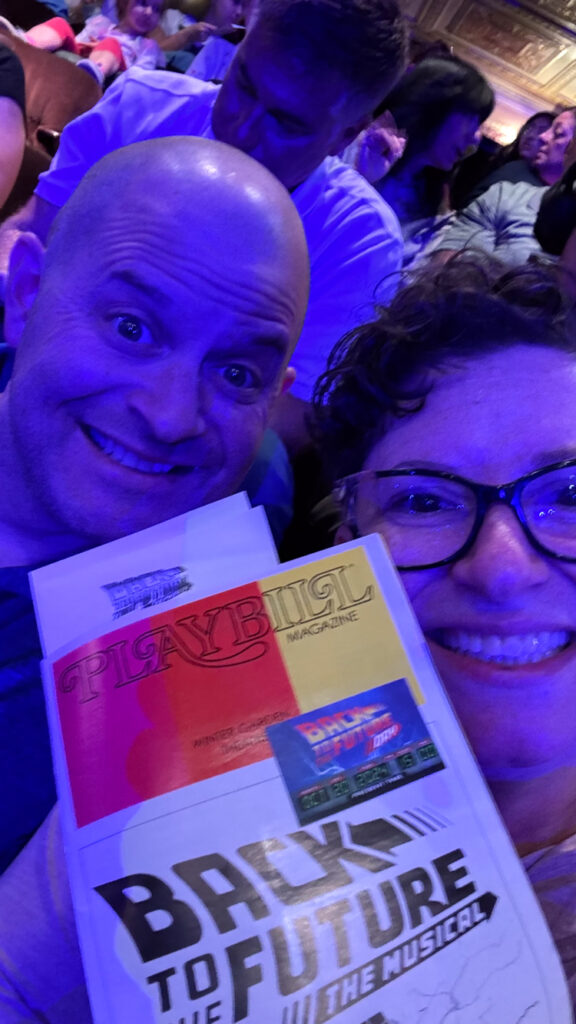 At last, our first Broadway show together. What better way to celebrate my brother getting old by revisiting a timeless (see what I did there) tale from our childhood. We got in line to enter the theater – a line that wrapped ALL the way around the block. Behind us was a nice family who hinted at some sort of surprise outside after the show. Unbeknownst to us, it also was Back to the Future Day. Normally celebrated on BJ’s actual birthday (Oct. 21) because that’s the date Bob Gale and Robert Zemeckis conceived of the first movie, it was moved up because the 21st was a Monday, when Broadway is dark.