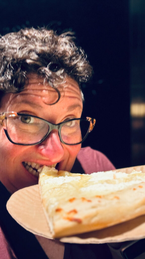 Sad that I didn’t run into my hall pass, I consoled myself with a late night white slice before bed.