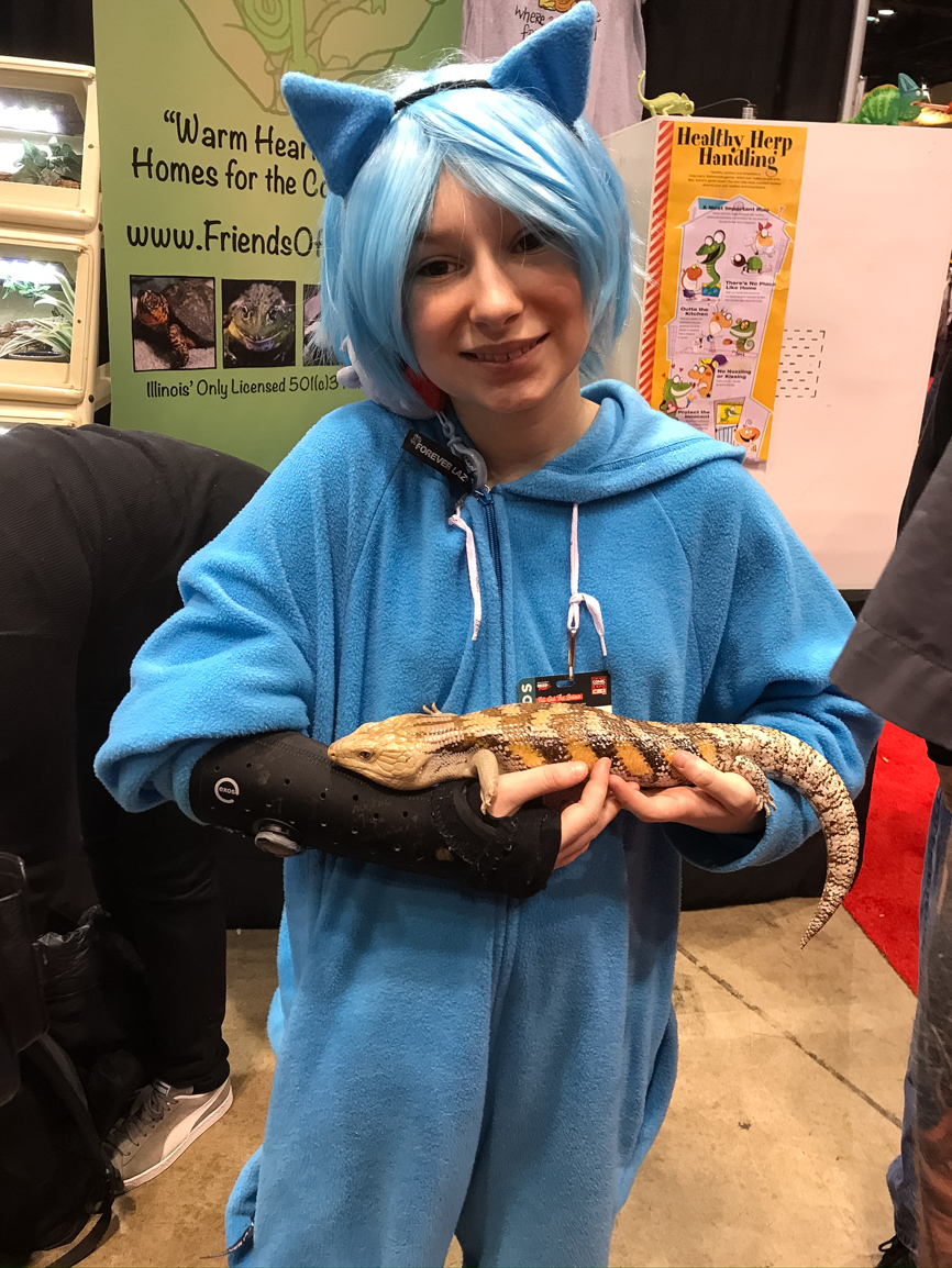 The Girl’s favorite booth, without a doubt, was the Friends of Scales Reptile Rescue booth. On the last day, she got to hold Hufflepuff the blue tongued skink.